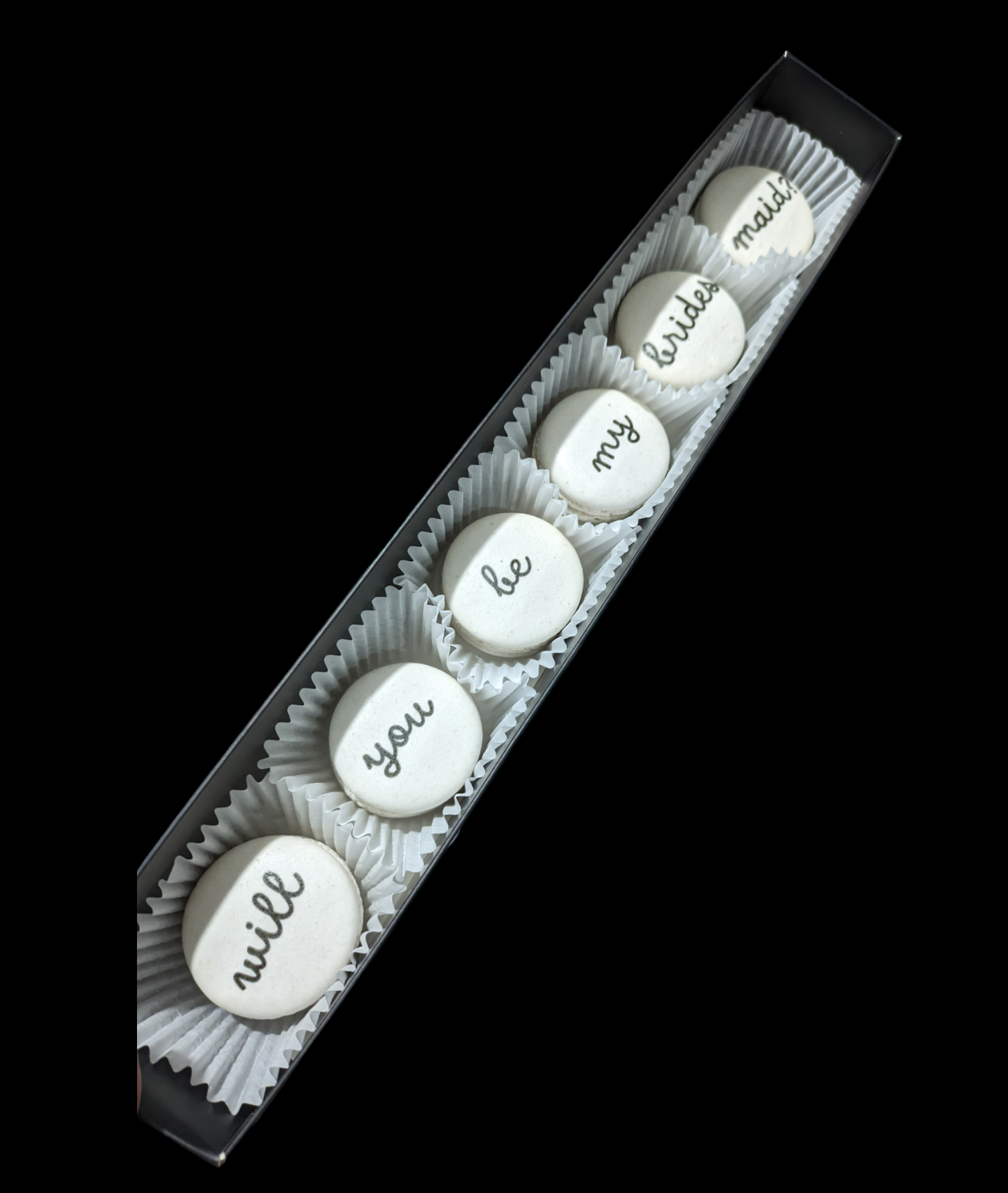 Custom Printed Macarons - One Dozen. All custom printed macarons will be white, vanilla macarons to ensure clarity of the photo/logo/words.